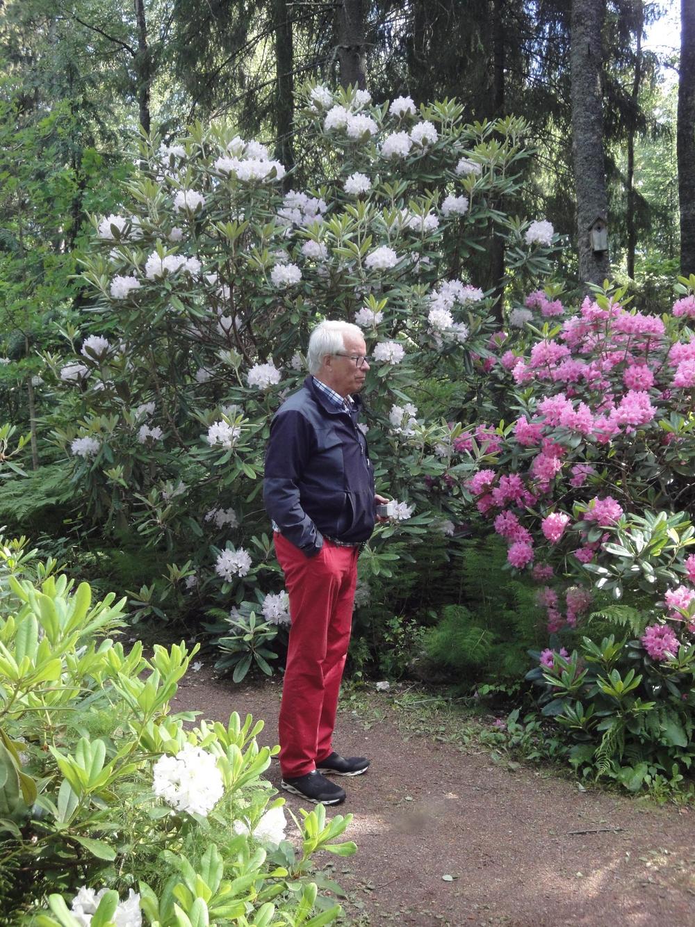Vaikka olenkin kahden kukkakauppiaan pojanpoika ja nähnyt isovanhempieni pihalla jos jotakin kasvinkantturaa, niin Frickin Arboretumissa ei voi kuin pyöritellä silmiään hämmästyksestä. Lapsuudessani isoja rodoja käytiin katsomassa Hagenbeckin eläintarhassa Hampurissa, joka oli lähin paikka, missä niitä oli. Silloisessa kylmässä ilmastossa sen ajan lajikkeet eivät Suomessa kasvaneet lumensyvyyttä korkeammaksi. Toisaalta lunta oli silloin Etelä-Suomessakin lähes metri, että ei ne nyt mitään ihan kitukasvuisia olleet ne ukin rodotkaan. Kannattaa käydä ja tilata Erkin oma esittely omasta harrastuksestaan. Aivan huikeaa kuultavaa! Ja katsottavaa!