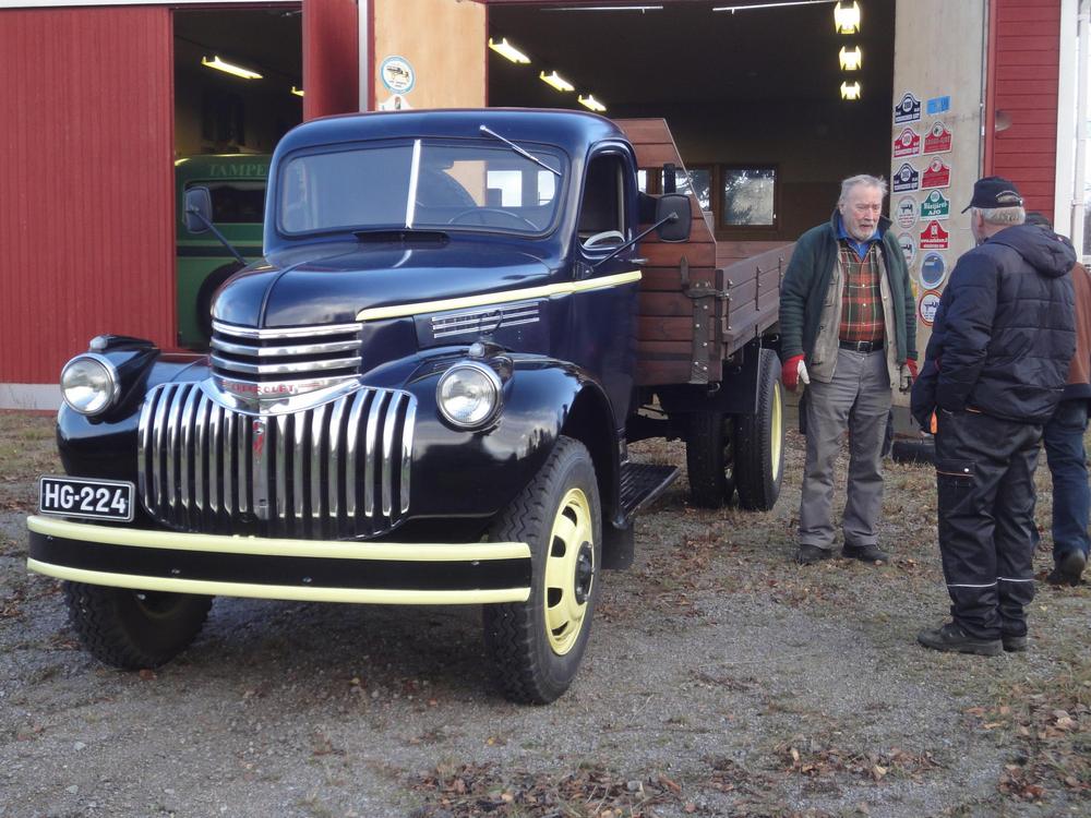 Onneksi kerhon kuorkki, Chevrolet vm. 1946, piileksi tallissa. Se saatiin suhteellisen pienin ponnistuksia käyntiin ja koeajolenkille. Hyvin peli pelasi. Ensi vuoden ajokaudella sitä täytyy ulkoiluttaa jossain tapahtumissa. Tällä kertaa se vältti elokuvatuotannon, johon se oli tarjolla.