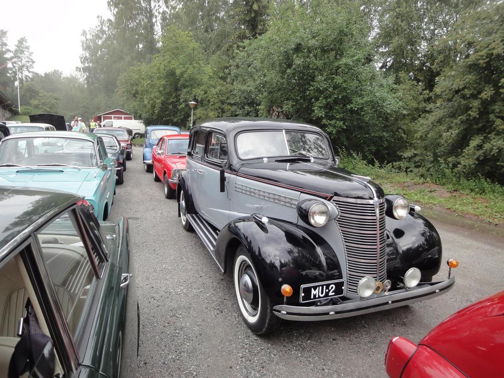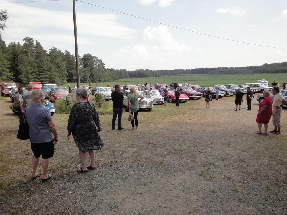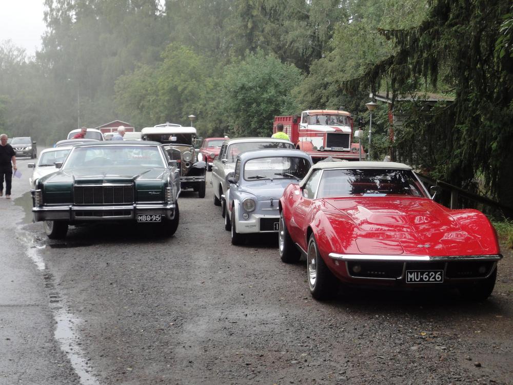 Aurinkoisen kesän sadekuurot sattuivat viime lauantaihin, kun 48 autokuntaa kokoontui Vehoniemeen. Määrä on ennätys moneen vuoteen, toki tielle enemmänkin mahtuisi. Ajoneuvokantaa oli laidasta laitaan, kun harrasteajoneuvoilla oli oma luokkansa. Tulevana vuonna täytyy ilmeisesti palkata moottoripyörä osallistumaan malliksi, kun niitä ei vapaaehtoisesti tule. Aamukahvin lomassa kyseltiin visaisia kysymyksiä, jotta maalissa voitiin jakaa palkintoja.