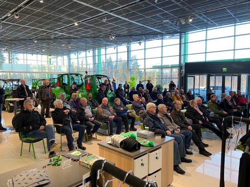 Mutta loppujen lopuksi suurin hämmästys ja ihailun aihe oli itse tehdas ja sen tuotantolinja. Avant tekee koneet alusta loppuun itse. Väri on se "Oikea Vihreä", mutta mustasta raudasta robotit räiskivät pienetkin osat. Moottorit ovat osto tavaraa, samoin renkaat ja näkyi siellä Fennosteelin änkkäreitä. Vihreiksi osat muuttuivat isoissa maalausautommteiisa, jotka näyttivät aivan uusilta. Varsinaiset koneet valmistuivat linjalla, jossa jono vihivaunuja niitä kuljetti työpisteeltä toiselle. Tehtaalla kokoa oli lähes silmänkantamattomiin. Selvästi näkyi, että tuotanto oli todella hienosti ja sujuvaksi suunniteltu. Ja työntekijät olivat nuoria, iloisen näköisiä ja tervehtivät meidän zombilaumaa ystävällisesti. Kun kaikki oli vielä puhdasta ja järjestyksessä, niin onhan siinä menestyksen tunnukset koossa.