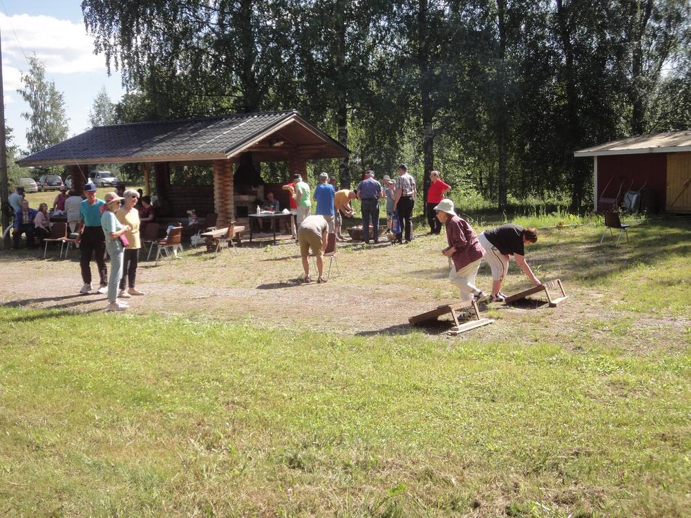 Koska meillä on kerhosamme niin vähän eläkeikäisiä, kutsumme joka vuosi malliksi Eläkeliiton Kangasalan osasto Ry. He olivat takavuosina yhteistyökumppaneita RR-päivien järjestelyissä. He jumppaavat, heittävät tikkaa ja ketjuja sekä laulavat, mutta syövät makkaraa! Jumpassa oli selkeä tavoite: Urheilusuoritusten parantaminen ja vammojen vähentäminen. Ja kyllä tarinaakin tuli. Ensi kesänä tavataan taas!