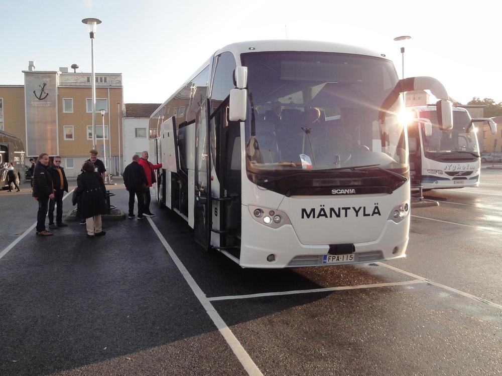 Meitä oli 28 matkalaista bussissa, kun yksi pariskunta joutui peruuttamaan matkansa sairastapauksen vuoksi. Se on aika tavallinen matkustajamäärää meille. Perusjoukon lisäksi oli uusiakin matkalaisia mukana. Auto oli Mäntylän tuttu Kanikka, jota perinteisesti ajoi Matti.