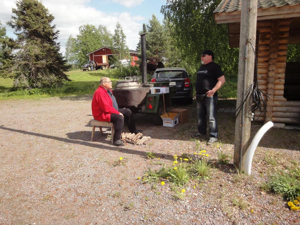 Kutsuimme kylään Restaurantaan Hämeen ja Parkanon Mobilistit, Mansen Masinistit, VW-Kerhon Tampereen jaoksen ja FHRA:n. Omaa väkeä Alku näytti aika hiljaiselta, kun virittelimme tulta Pallin soppatykin alle. Onneksi säätilaus oli mennyt selvästi oikeaan osoitteeseen.