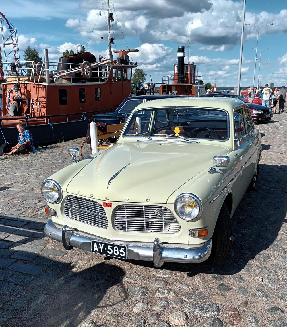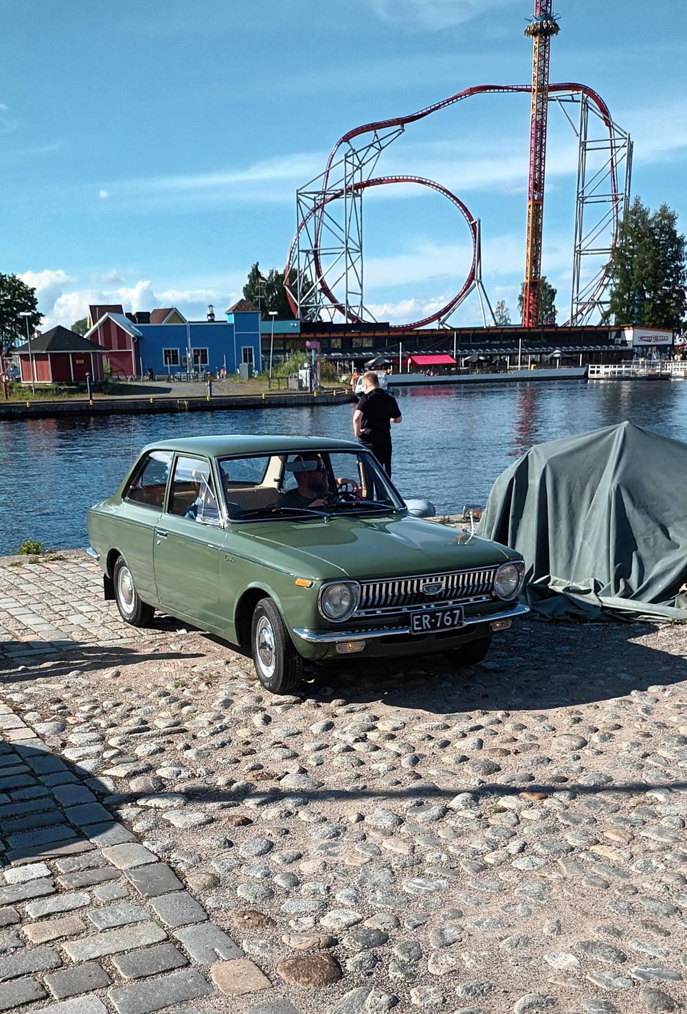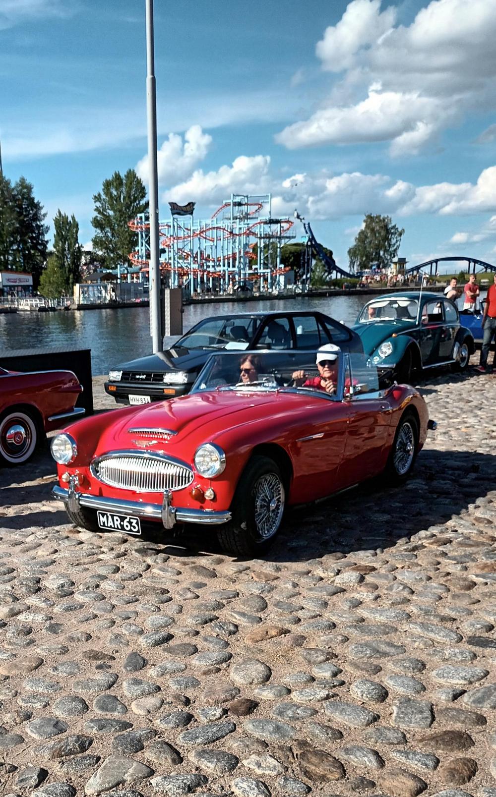 Toivottavasti ilta oli kaupallisille toimijoille hyvä. Autokattaus oli hieno: laidasta laitaan kiiltävää peltiä. Aina näyttää olevan joku uusi: Nyt se oli sama Tuntsa, joka tuli Oolannista Kangasalle viikonloppuna ja oli Restaurannan makkaraterapiassa maanantaina. Joukossa oli myös Toyota Gorilla, jota en muista nähneeni, tosi hieno kuntoinenkin. Niillä Suomen kansa ajeli puoli vuosisataa sitten, niin kuin Amazonillakin. Oli hauska nähdä Austin Healey. Se oli 1960-luvulla ihan oikea urheiluauto, jolla ajettiin jäällä ja maalla kilpaa. Ja kuskeina oli nuoria miehiä, joista tuli maailman kuuluisia rallikuskeja.