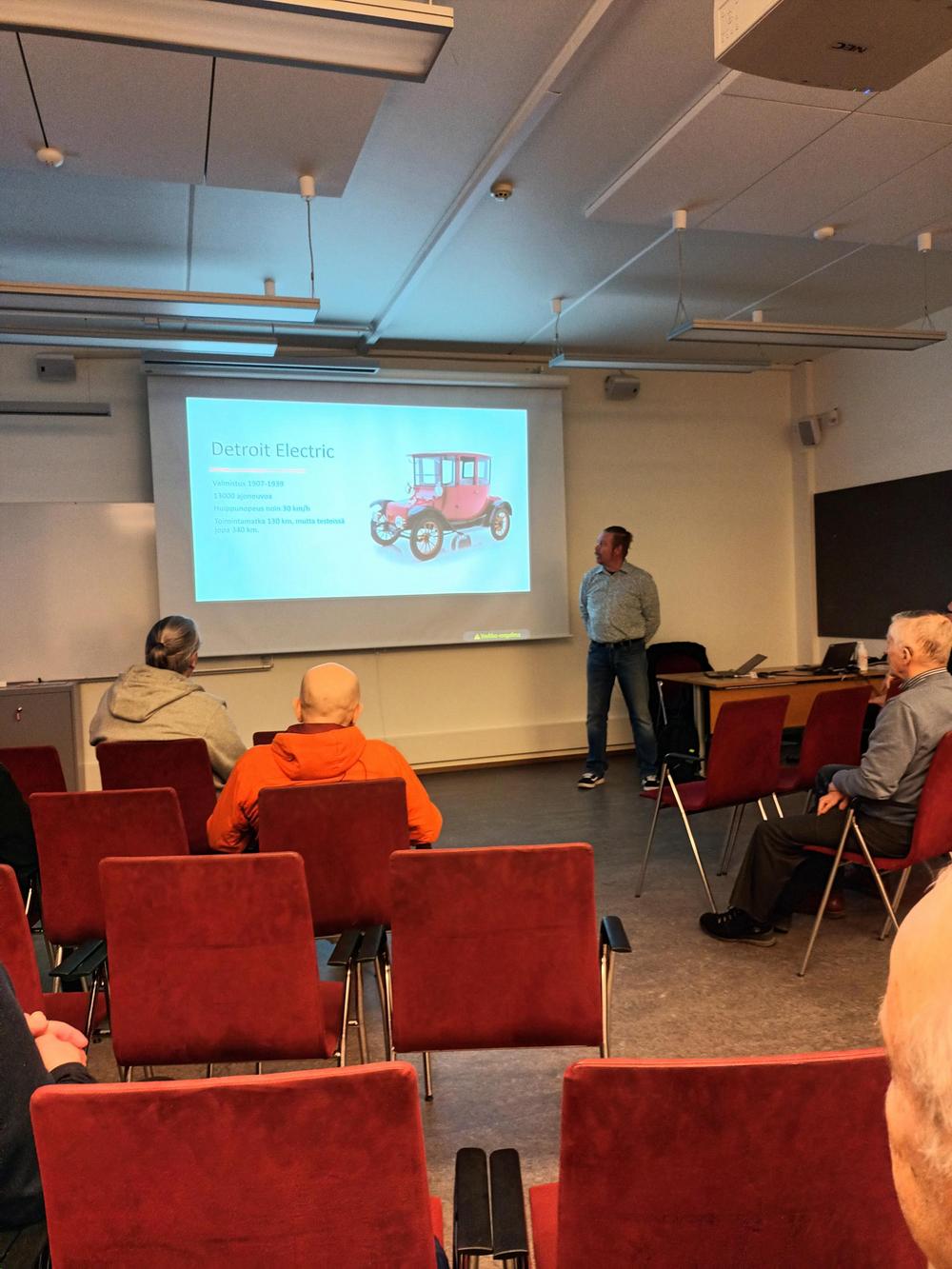 Luentosarjan puuhamies Mikko Heimo aloitti kertomalla luentosarjan ajatuksesta. Alustuksen jälkeen Mikko kertoi nykyhetken kuumasta perunasta eli sähköautoista.
