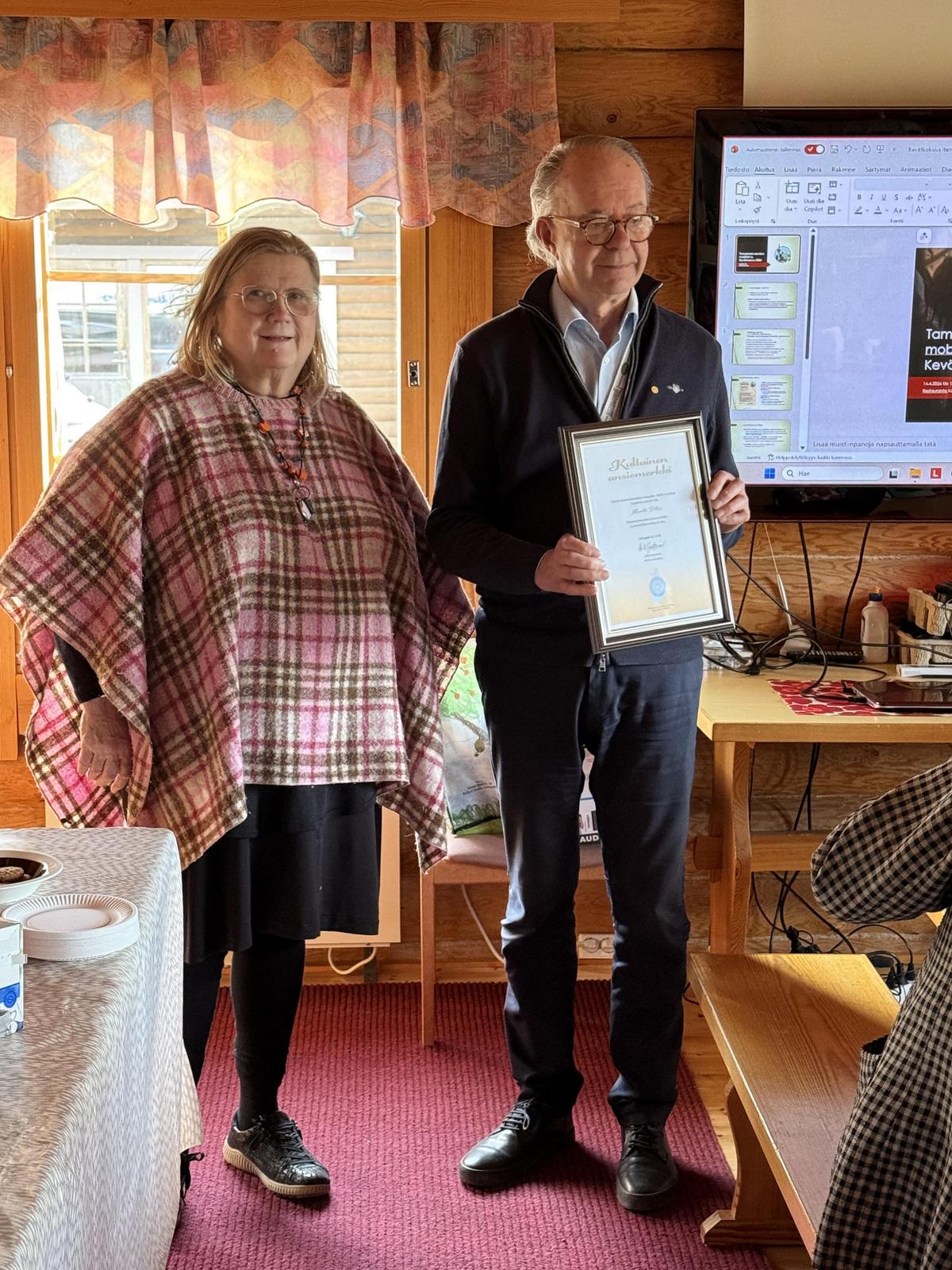 Kokouksen alussa Martti Piltz palkittiin SAHK ry:n kultaisella ansiomerkillä. Ansiomerkin luovutti Leila Suutarinen.